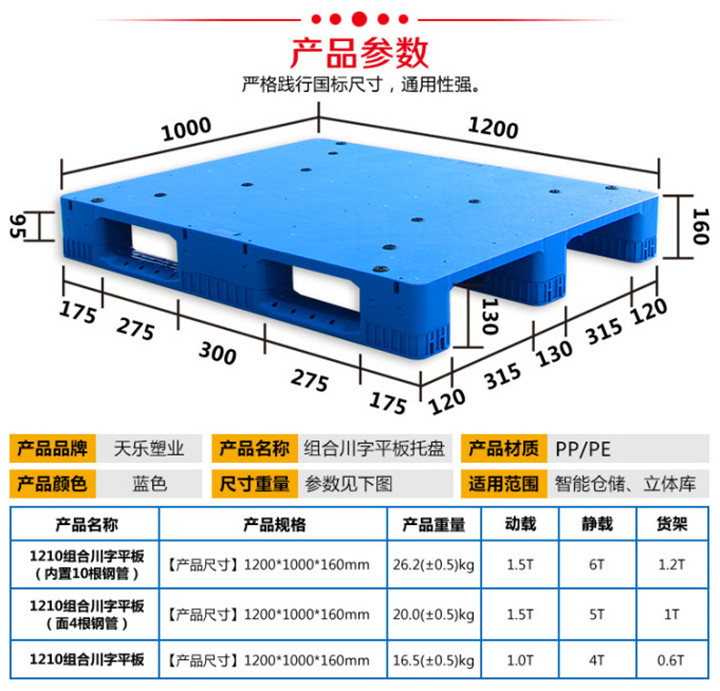ZPCG-1210組合川字平板塑料托盤-加10根鋼管
